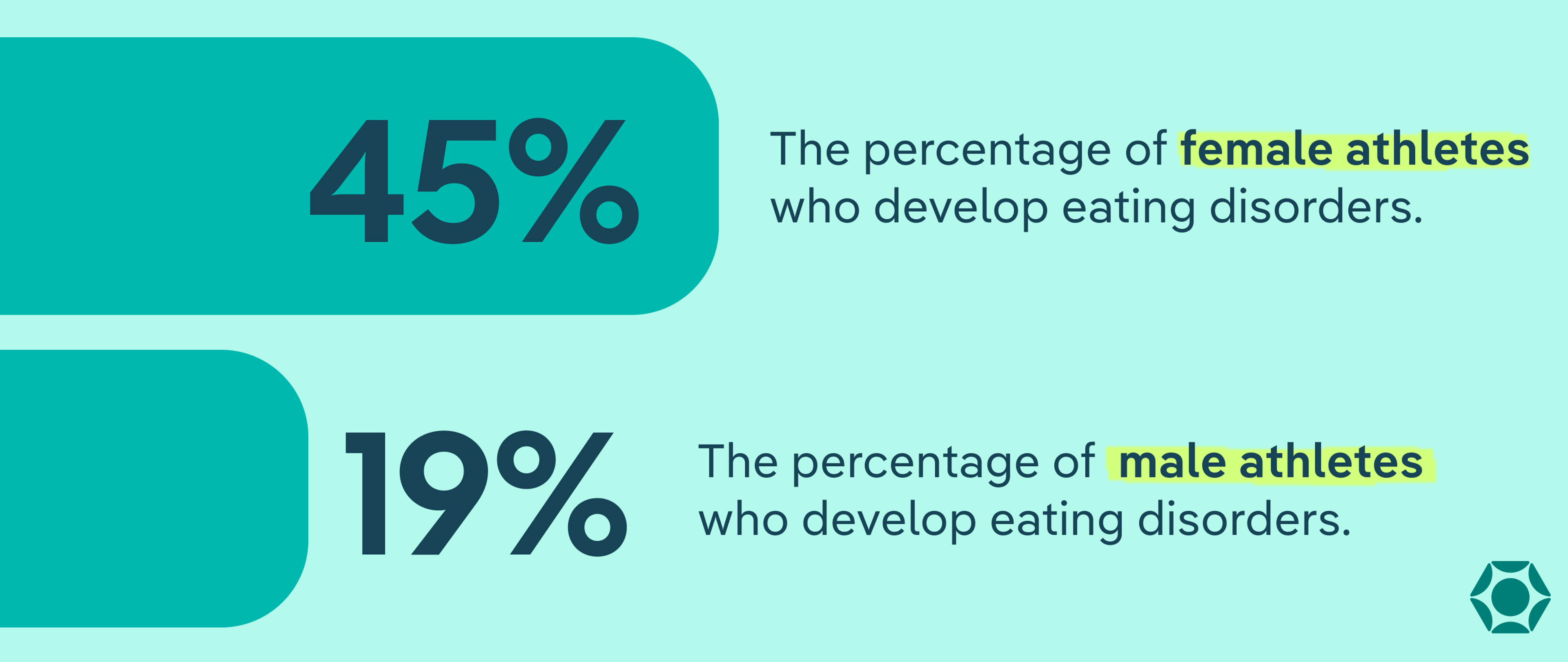 - Up to 45% of female athletes and 19% of male athletes develop eating disorders.