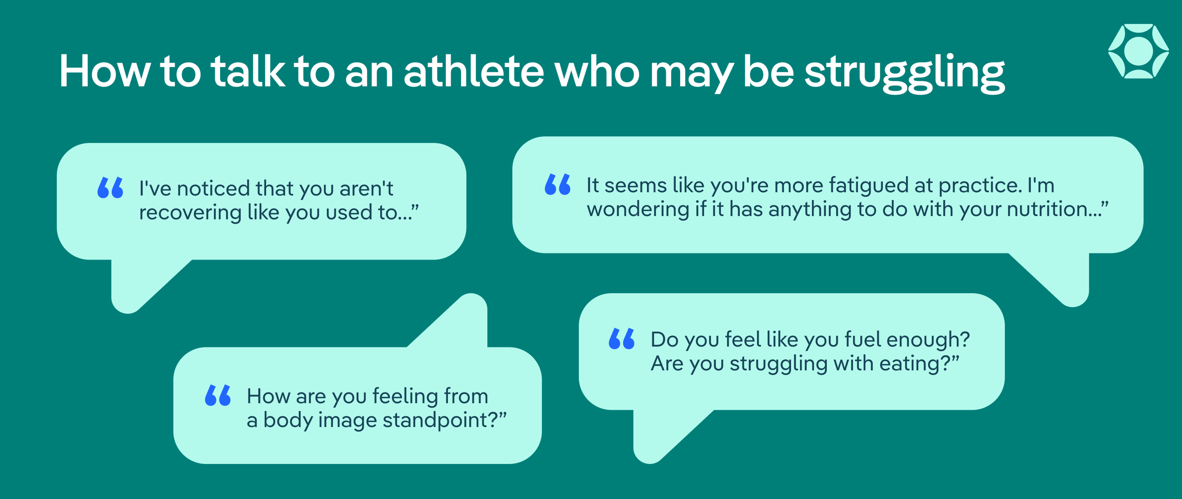 - “It seems like you're more fatigued at practice. I'm wondering if it has anything to do with your nutrition…”