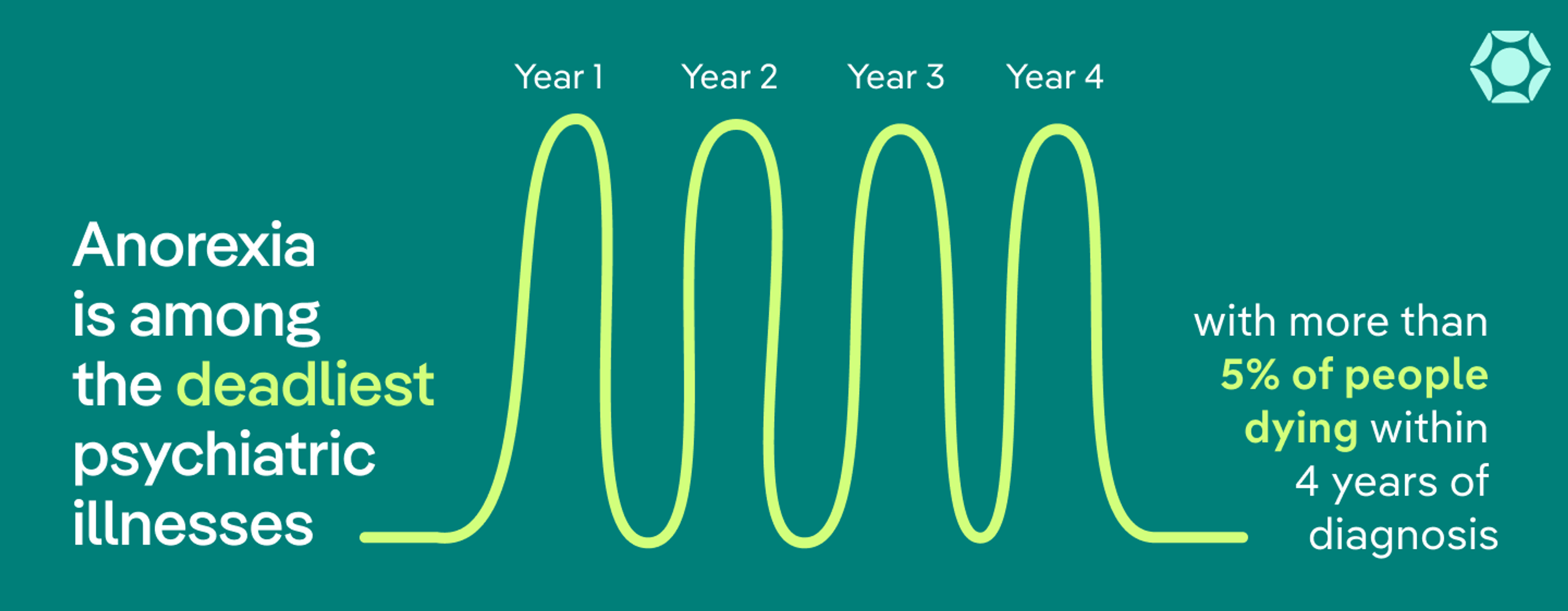 At its core, anorexia involves ongoing food restriction and intense fear of weight gain or body changes. Because restriction can lead to malnutrition, anorexia is the most life-threatening eating disorder. It has one of the highest mortality rates of any psychiatric illness, with more than 5% of people dying within four years of diagnosis. Rates of anorexia have increased in recent years, especially among adolescent girls and young adult women.