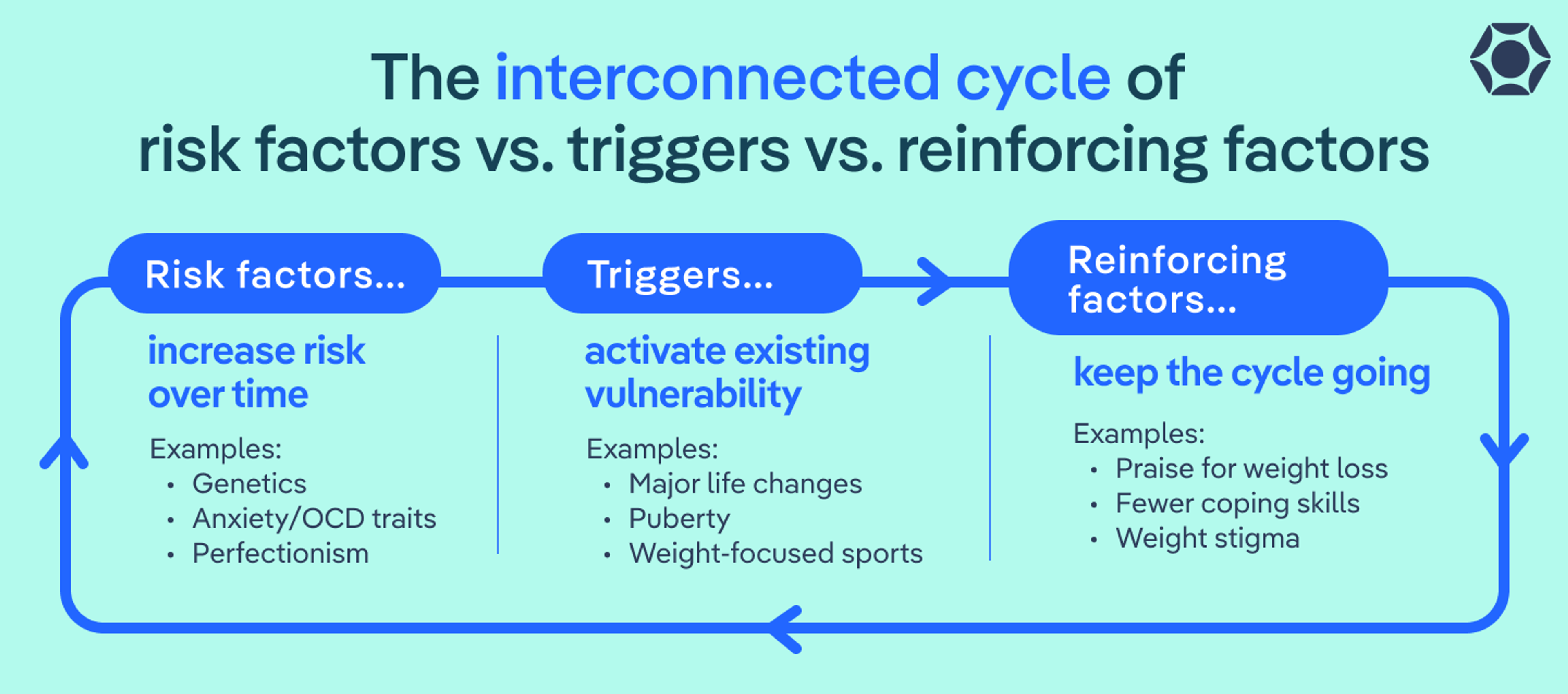 - Dieting, illness, stress, or unintentional weight loss can act as a tipping point, especially for people who are already vulnerable.