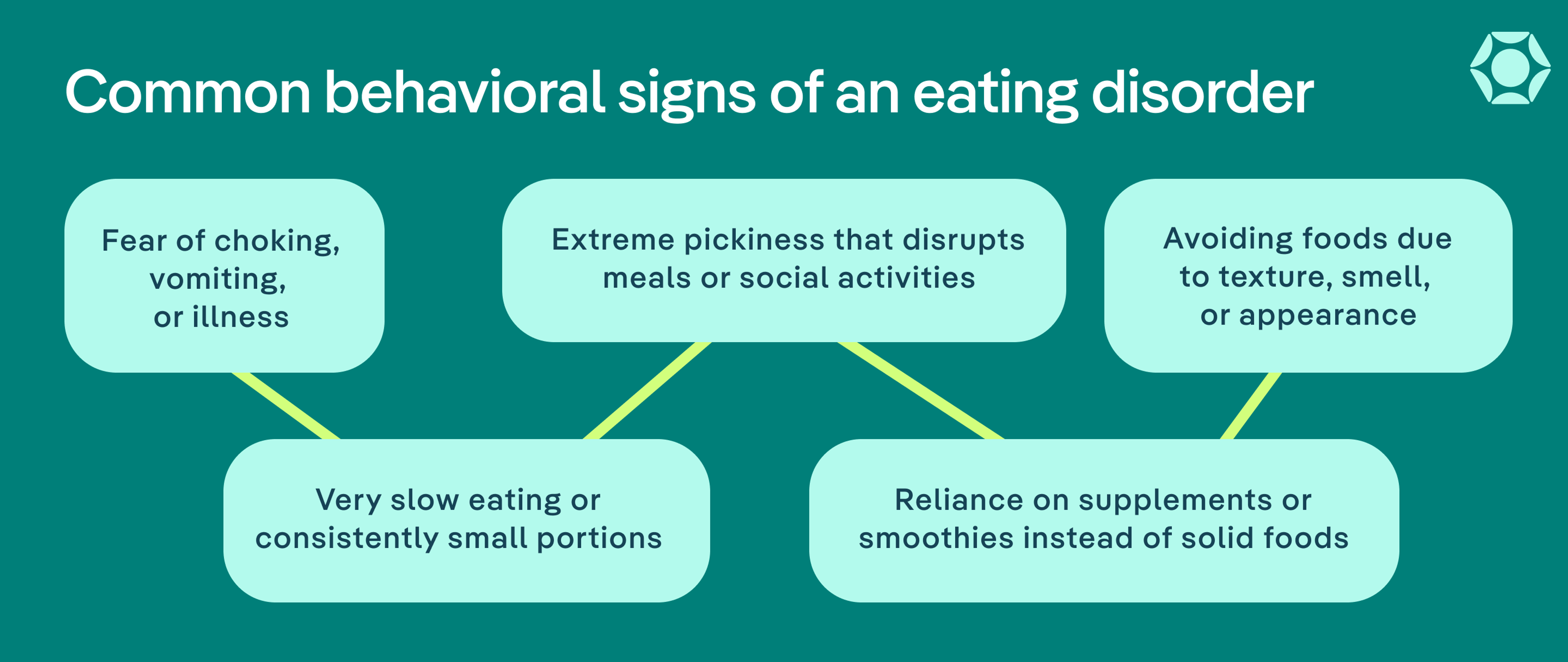 Behavioral patterns in ARFID often center on avoidance, rigidity, or distress related to specific foods or eating environments. Here’s what to look out for, according to Rosen: