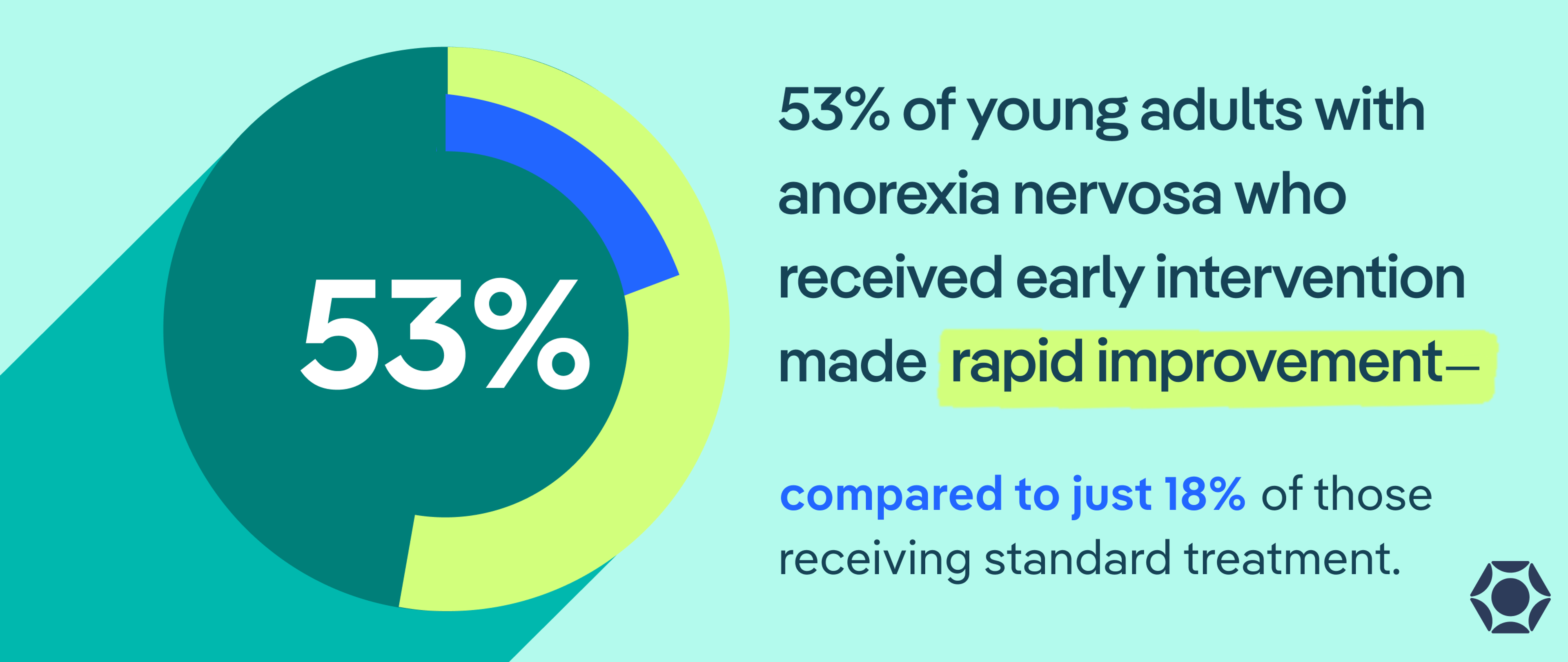 In one study, 53% of young adults with anorexia nervosa who received early intervention made rapid improvement, compared to just 18% of those receiving standard treatment. Acting quickly can shorten the course of illness, reduce hospitalizations, and restore healthy behaviors before they become deeply ingrained.